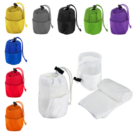 Toalla Facial de Microfibra. Presentación dentro de bolsito de poliéster con malla. Fácil de transportar y liviana, ideal para hacer deportes y para el Gimnasio.