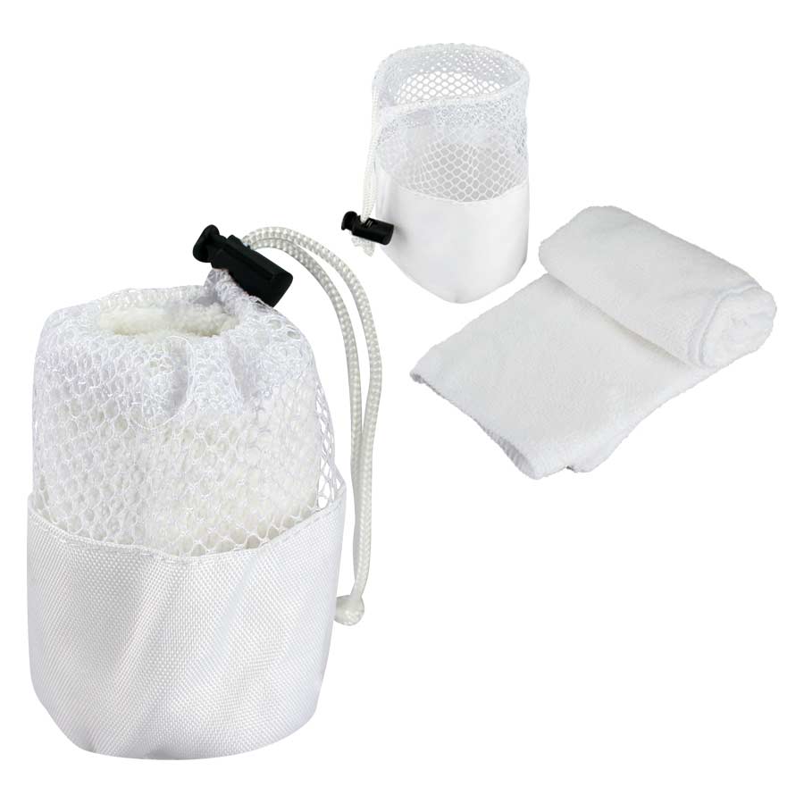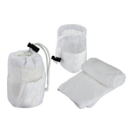 Toalla facial en tela Microfibra para Sublimación. Presentación dentro de bolsito de poliéster con malla.30 x 33 cm.
