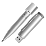 USB Bolígrafo metálico ejecutivo, con memoria de 32GB. Presentación en elegante estuche de aluminio con ventana, dentro de cuna de esponja EVA negra.