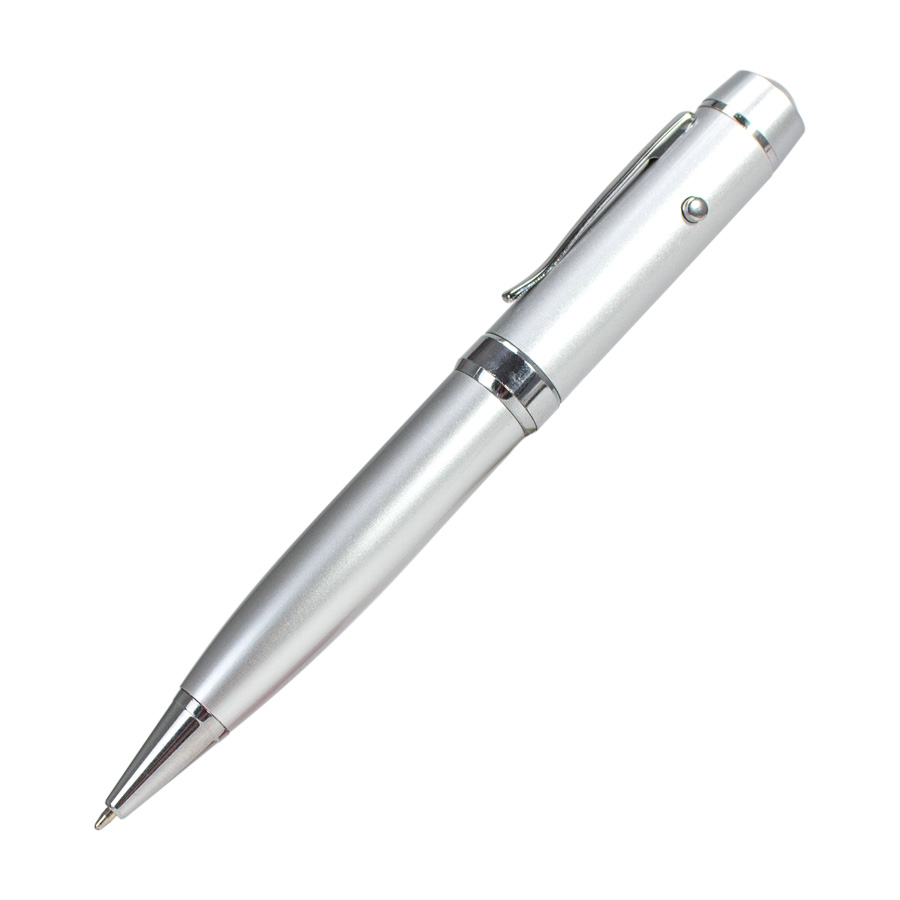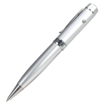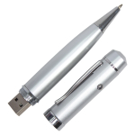 USB Bolígrafo metálico ejecutivo, con memoria de 64GB y Puntero Láser. Presentación en elegante estuche de aluminio con ventana, dentro de cuna de esponja EVA negra.