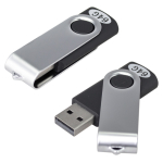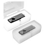 USB Pendrive 2.0 con 64GB de memoria, con carcasa metálica de giro. Presentación en caja de PVC translúcido.