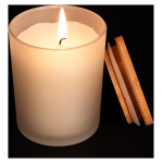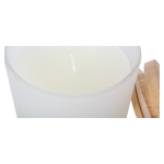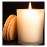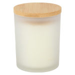 Vela aromática de 8oz en envase redondo de vidrio empavonado con tapa de Bamboo. Aroma a Vainilla. Ideal para regalo de hogar y aromaterapia. Amplia superficie de impresión de logo.